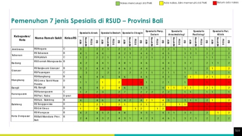 Nakes mencukupi std PMK Ada nakes, blm memenuhi std PMK Belum ada nakes Pemenuhan 7 jenis Spesialis di RSUD – Provinsi Bali 569