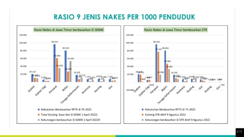 Rasio dokter spesialis di Jawa Timur berdasarkan SI Rasio dokter spesialis di Jawa Timur berdasarkan STR Rasio Nakes di Jawa Timur berdasarkan SI SDMK Rasio Nakes di Jawa Timur berdasarkan STR
