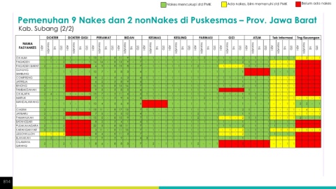 Nakes mencukupi std PMK Ada nakes, blm memenuhi std PMK Belum ada nakes Pemenuhan 9 Nakes dan 2 nonNakes di Puskesmas – Prov. Jawa Barat Kab. Subang (2/2) 814