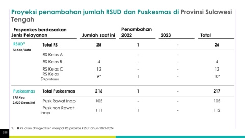 Proyeksi penambahan jumlah RSUD dan Puskesmas di Provinsi Sulawesi