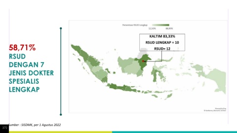 KALTIM 83,33% 58,71% RSUD LENGKAP = 10 RSUD= 12 RSUD DENGAN 7 JENIS DOKTER SPESIALIS LENGKAP Sumber : SISDMK, per 1 Agustus 2022 372