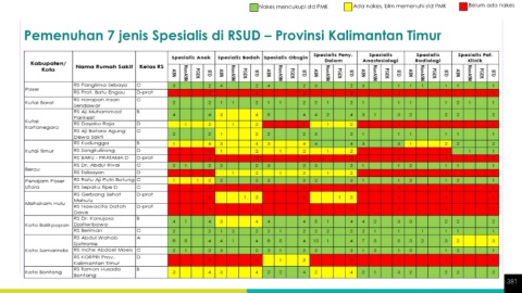 Nakes mencukupi std PMK Ada nakes, blm memenuhi std PMK Belum ada nakes Pemenuhan 7 jenis Spesialis di RSUD – Provinsi Kalimantan Timur 381