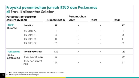 Proyeksi penambahan jumlah RSUD dan Puskesmas