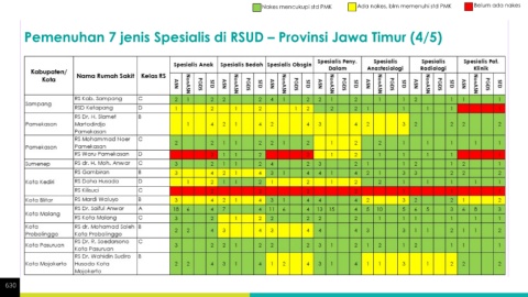 Nakes mencukupi std PMK Ada nakes, blm memenuhi std PMK Belum ada nakes Pemenuhan 7 jenis Spesialis di RSUD – Provinsi Jawa Timur (4/5) 630