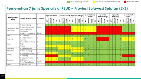 Nakes mencukupi std PMK Ada nakes, blm memenuhi std PMK Belum ada nakes Pemenuhan 7 jenis Spesialis di RSUD – Provinsi Sulawesi Selatan (2/3) 250