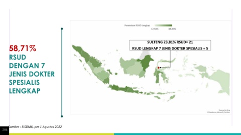 SULTENG 23,81% RSUD= 21 58,71% RSUD LENGKAP 7 JENIS DOKTER SPESIALIS = 5 RSUD DENGAN 7 JENIS DOKTER SPESIALIS LENGKAP Sumber : SISDMK, per 1 Agustus 2022 286