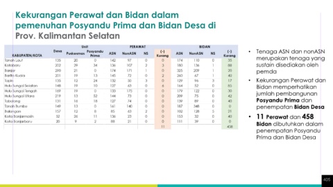 spesialis di Prov. Kalimantan Selatan pemenuhan Posyandu Prima dan Bidan Desa di