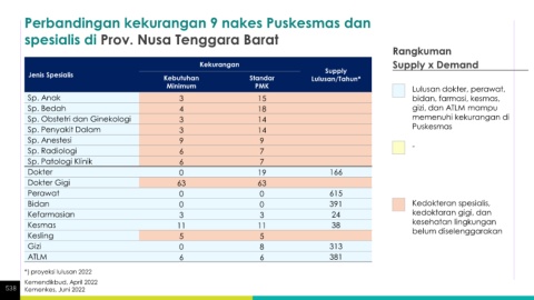 Perbandingan kekurangan 9 nakes Puskesmas dan