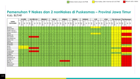 Nakes mencukupi std PMK Ada nakes, blm memenuhi std PMK Belum ada nakes Pemenuhan 9 Nakes dan 2 nonNakes di Puskesmas – Provinsi Jawa Timur Kab. BLITAR 636