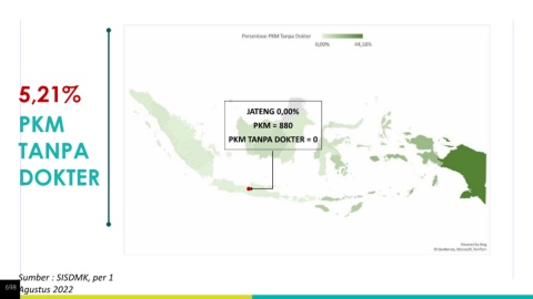 5,21% PKM JATENG 0,00% PKM = 880 TANPA PKM TANPA DOKTER = 0 DOKTER Sumber : SISDMK, per 1 698 Agustus 2022