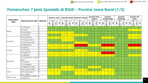 Nakes mencukupi std PMK Ada nakes, blm memenuhi std PMK Belum ada nakes Pemenuhan 7 jenis Spesialis di RSUD – Provinsi Jawa Barat (1/3) 787