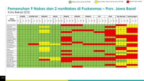 Nakes mencukupi std PMK Ada nakes, blm memenuhi std PMK Belum ada nakes Pemenuhan 9 Nakes dan 2 nonNakes di Puskesmas – Prov. Jawa Barat Kota Bekasi (2/2) 828