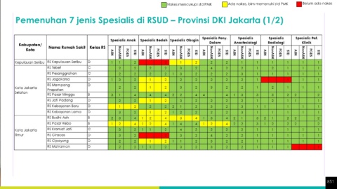 Nakes mencukupi std PMK Ada nakes, blm memenuhi std PMK Belum ada nakes Pemenuhan 7 jenis Spesialis di RSUD – Provinsi DKI Jakarta (1/2) 851