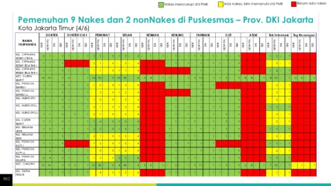 Nakes mencukupi std PMK Ada nakes, blm memenuhi std PMK Belum ada nakes Pemenuhan 9 Nakes dan 2 nonNakes di Puskesmas – Prov. DKI Jakarta Kota Jakarta Timur (4/6) 862