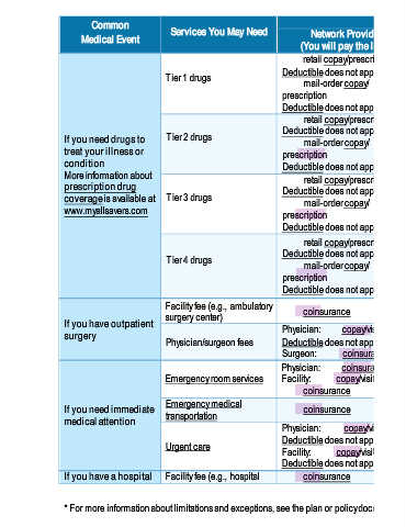 Medical Event Services You May Need Network Provider Out-of-Network Provider Other Important Information