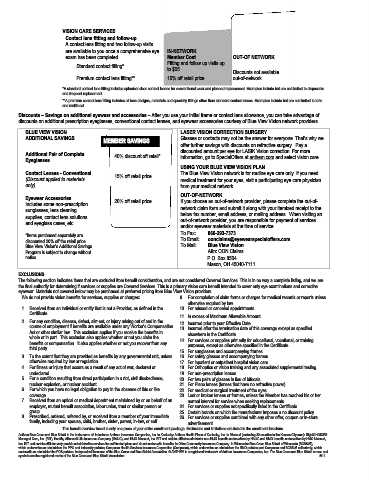 discounts on additional prescription eyeglasses, conventional contact lenses, and eyewear accessories courtesy of Blue View Vision network providers.