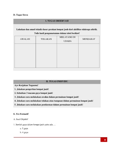 Lakukan dan amati teknik dasar gerakan lompat jauh dari aktifitas olahraga atletik.