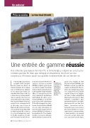 quant à eux, équipés en série de la motorisation DAF MX-13 en dé nition 462ch (2300Nm de couple). Le véhicule de démons- tration est con guré en 59 places +1+1, et laisse encore 1100kg de capacité d'emport de bagages en soutes. L'autre con guration départ usine est en 57+1+1. Deux variantes « capacitaire » typi- quement françaises sont égale- ment proposées par Van Hool France : ces versions sont ho- mologuées pour 61+1+1 passa- gers (avec toilettes) ou 63 pas- sagers (sans). Ces deux variantes « maxi-capacités » ne peuvent s'associer qu'aux sièges Kiel 2010, aux dossiers moins épais.