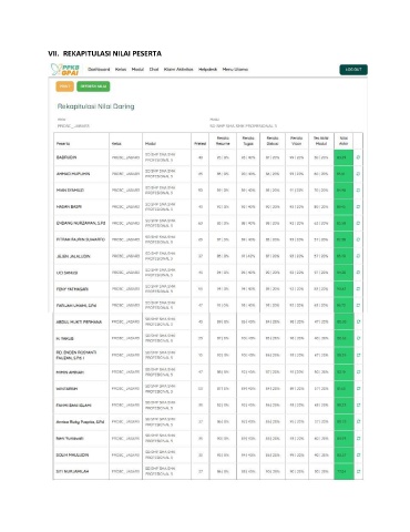 VII. REKAPITULASI NILAI PESERTA
