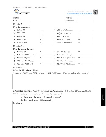 LESSON 5: COMPARISON OF NUMBERS 5.7 | P a g e
