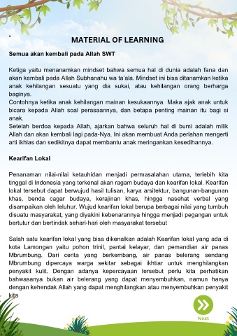 akan kembali pada Allah Subhanahu wa ta’ala. Mindset ini bisa ditanamkan ketika