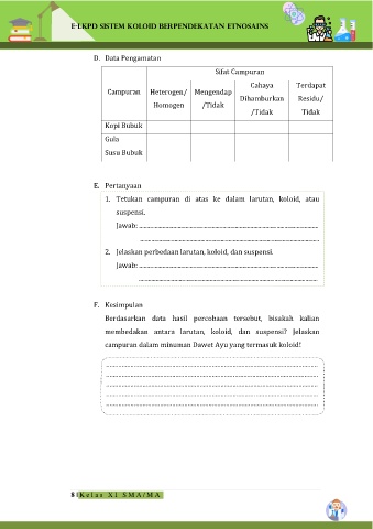E-LKPD Sistem Koloid Berpendekatan Etnosains
