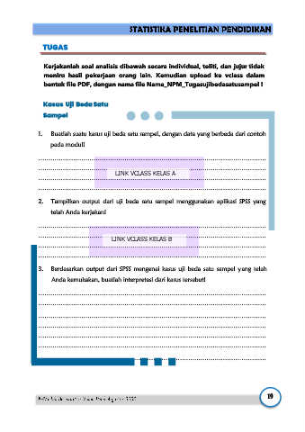 bentuk file PDF, dengan nama file Nama_NPM_Tugasujibedasatusampel !