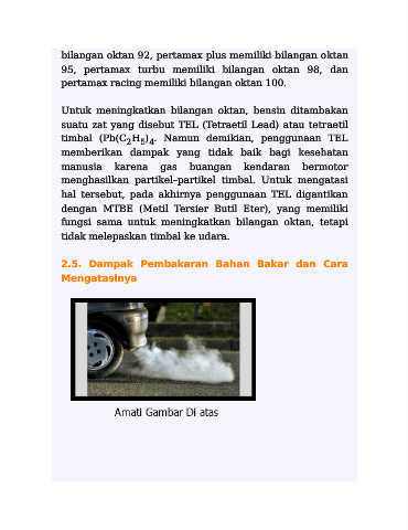 Untuk meningkatkan bilangan oktan, bensin ditambakan