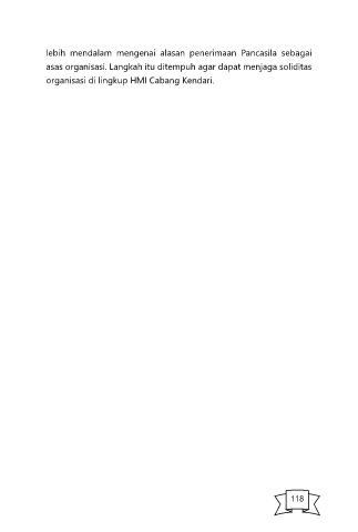 lebih mendalam mengenai alasan penerimaan Pancasila sebagai asas organisasi. Langkah itu ditempuh agar dapat menjaga soliditas organisasi di lingkup HMI Cabang Kendari. 118