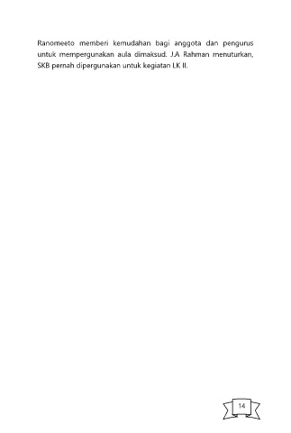 Ranomeeto memberi kemudahan bagi anggota dan pengurus untuk mempergunakan aula dimaksud. J.A Rahman menuturkan, SKB pernah dipergunakan untuk kegiatan LK II. 14
