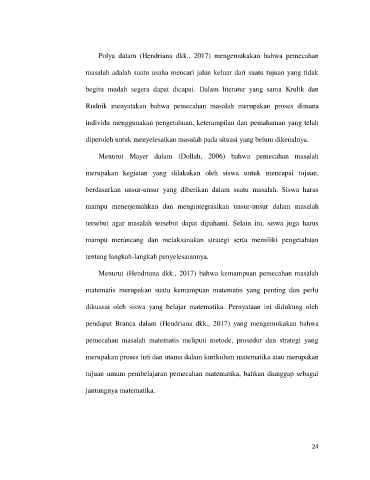 Polya dalam (Hendriana dkk., 2017) mengemukakan bahwa pemecahan
