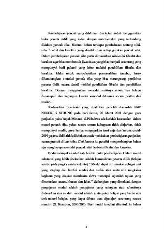 ajar yang berupa e-modul pencak silat berbasis filsafat dan karakter.