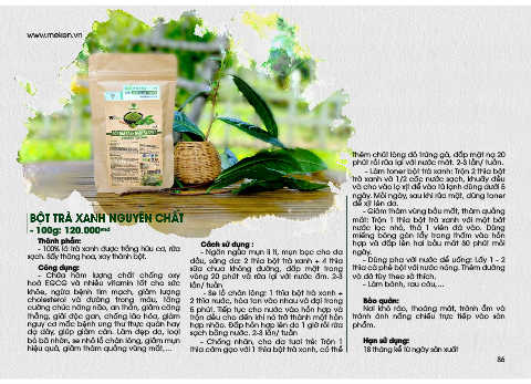 - 100% lá trà xanh được trồng hữu cơ, rửa - Ngăn ngừa mụn li ti, mụn bọc cho da ngày.
