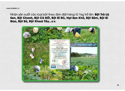www.meken.vn Nhận sản xuất các loại bột theo đơn đặt hàng từ 1kg trở lên: Bột Trà Lá Sen, Bột Chanh, Bột Cà Rốt, Bột Bí Đỏ, Hạt Sen Khô, Bột Sâm, Bột Bí Đao, Bột Sả, Bột Khoai Tây...v.v. 93