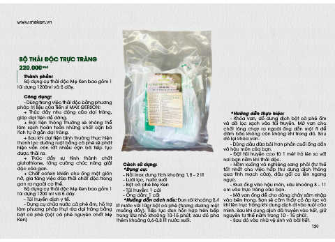 túi đựng 1200 ml và 5 dây. - Ống dẫn: 1 cái - Mở van ống để cho dòng chảy xâm nhập