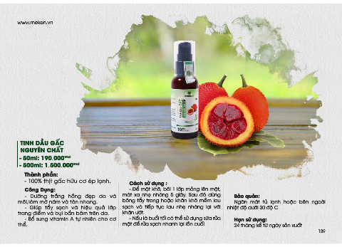 - 100% thịt gấc hữu cơ ép lạnh. Cách sử dụng :