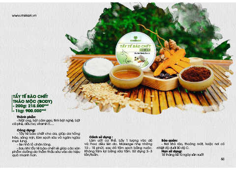 - Mật ong, bột cám gạo, tinh bột nghệ, bột