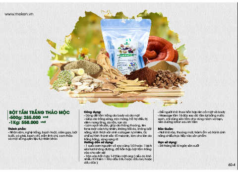BỘT TẮM TRẮNG THẢO MỘC Công dụng: - Để người khô thoa hỗn hợp lên cả mặt và body.