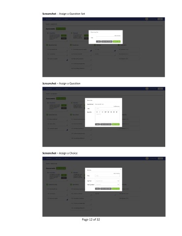 Screenshot – Assign a Question Set Screenshot – Assign a Question Screenshot – Assign a Choice Page 12 of 32