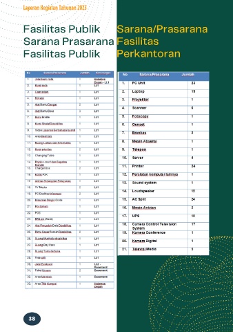 Laporan Kegiatan Tahunan 2023 Fasilitas Publik Sarana/Prasarana Sarana Prasarana Fasilitas Fasilitas Publik Perkantoran 38