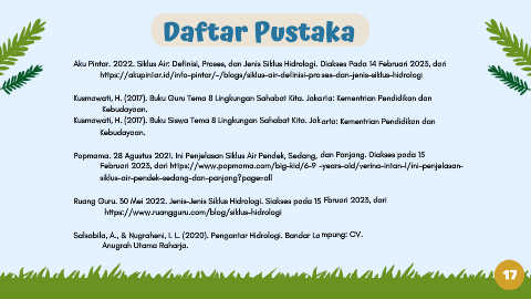 Ruang Guru. 30 Mei 2022. Jenis-Jenis Siklus Hidrologi. Siakses pada 15 Fbruari 2023, dari
