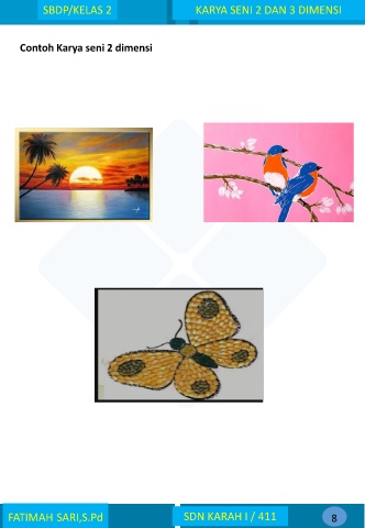SBDP/KELAS 2 KARYA SENI 2 DAN 3 DIMENSI Contoh Karya seni 2 dimensi FATIMAH SARI,S.Pd SDN KARAH I / 411 8