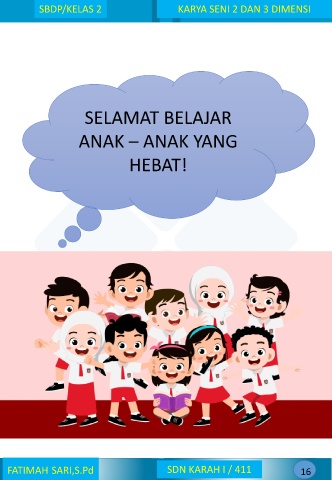 SBDP/KELAS 2 KARYA SENI 2 DAN 3 DIMENSI SELAMAT BELAJAR ANAK – ANAK YANG HEBAT! FATIMAH SARI,S.Pd SDN KARAH I / 411 16