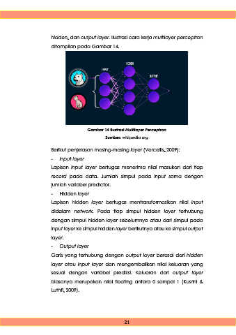 hidden, dan output layer. Ilustrasi cara kerja multilayer perceptron