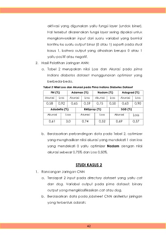 a. Tabel 2 merupakan nilai Loss dan Akurasi pada pima