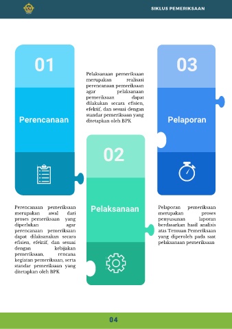 Perencanaan pemeriksaan Pelaksanaan Pelaporan pemeriksaan