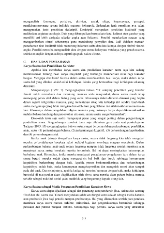membicarakan tentang hasil karya imajinatif yang berfungsi memberikan nilai bagi karakter