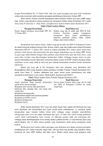 siswa kelas IV dan kelas V. Pada Tabel 2 disajikan hasil analisis Silabus dalam Kurikulum 2013.