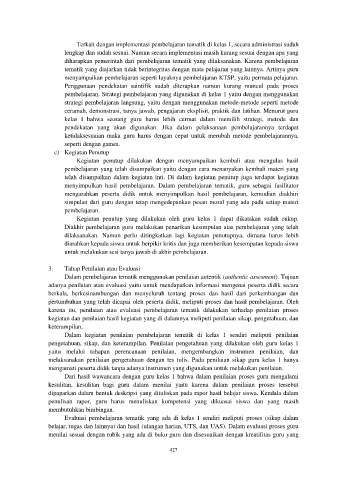 tematik yang diajarkan tidak berintegritas dengan mata pelajaran yang lainnya. Artinya guru