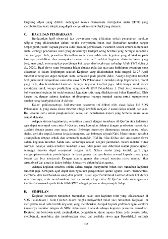 diakhiri dengan games atau tanya jawab. Beberapa materinya diantaranya tentang puasa, zakat,